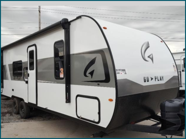 The affordable Go Play travel trailers by Wayfinder RV are ready to meet your camping needs! You will appreciate the durable Magnum Roof system, plus each model is constructed with black front diamond plate protection, 5/8" main floor decking, and self-adjusting electric brakes with E-Z Lube axles for smooth towing. The 81" interior height means you won't feel cramped when relaxing with friends and family, and the residential vinyl flooring throughout is easy to clean, which will be perfect if you're camping with little ones or pets. These models also include an AM/FM/Bluetooth radio with indoor/outdoor speakers, a digital TV antenna, plus a 13,500 BTU roof mounted A/C to keep you cool on those hot summer months.