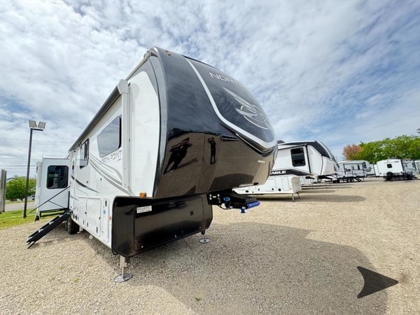 With any North Point fifth wheel by Jayco you begin with a strong foundation with a custom frame, designed and sized specifically to best support each unit. Constructed with Stronghold VBL aluminum framed, vacuum bond laminated walls and the Magnum Truss XL6 roof system with a one-piece, seamless roof material which is the strongest tested roof in the industry. The 5-Star Handling package is included with Uniroyal tires, a MORryde rubber pin box, Dexter axles with Nev-R-Adjust brakes, MORryde CRE-3000 rubberized suspension and wet bolt fasteners and bronze bushings. The interior has handcrafted hardwood glazed doors and drawers, vinyl flooring throughout, an integrated under-mount sink in the main bathroom, plus so much more you just have to see one to believe it all!