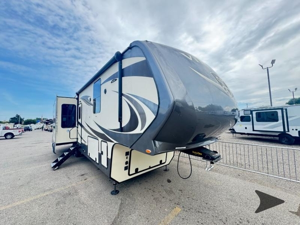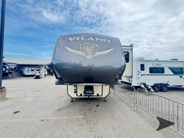 When you choose a Vilano fifth wheel you are getting a luxury fifth wheel without the high end price tag. Outside you will find a fully enclosed and heated underbelly with heat return and a Noble T60 high gloss fiberglass exterior. Inside enjoy solid surface kitchen countertops, a few residential features such as a kitchen faucet with pull-down sprayer, a three burner range, plus an 18 cu. ft. French Door refrigerator. In the living room you can enjoy the 50" LED TV, a residential fireplace, plus a sound bar with surround sound. The bedroom features dual USB ports in the nightstands, plus a hardwood six-drawer dresser and so much more! Whatever your adventure holds there is a fifth wheel model for you!