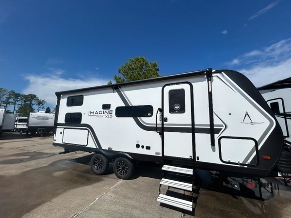 Let your imagination run wild with the possibilities that the Grand Design Imagine XLS travel trailer can provide! The Imagine XLS has been built with oversized tank capacities, an extra-large 2" fresh water drain valve, a ducted A/C system, a power tongue jack, and a heated and enclosed underbelly with suspended tanks. There is a designated heat duct to the subfloor and a residential ductless heating system throughout. For outdoor adventures, the electric awning with LED lights will enable you to stay protected, and the Tuff-Ply pass-thru flooring will withstand your many adventures. You will also love the XLS Solar Package that comes with a 200W roof mounted solar panel, a 40 Amp charge controller, a 12V 10 cu. ft. refrigerator, and roof mounted quick connect plugs!