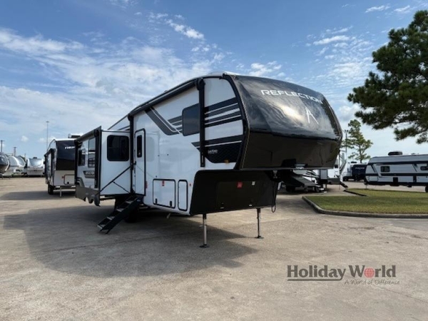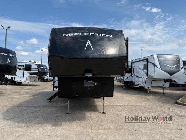 With any Reflection fifth wheel by Grand Design, you will have a solar panel for off-grid camping and a 60 amp charge controller and inverter prep, a Universal All-In-One docking station, unobstructed pass-through storage, and Goodyear Endurance tires. Each is constructed of gel coat exterior sidewalls, residential 5" truss rafters, walk-on roof decking, a fiberglass and radiant foil roof and front cap insulation plus laminated aluminum framed side walls, roof and end walls in slide rooms. Head inside to enjoy residential hardwood cabinet doors, premium Congoleum flooring, a spacious shower with a glass door, and many more comforts!