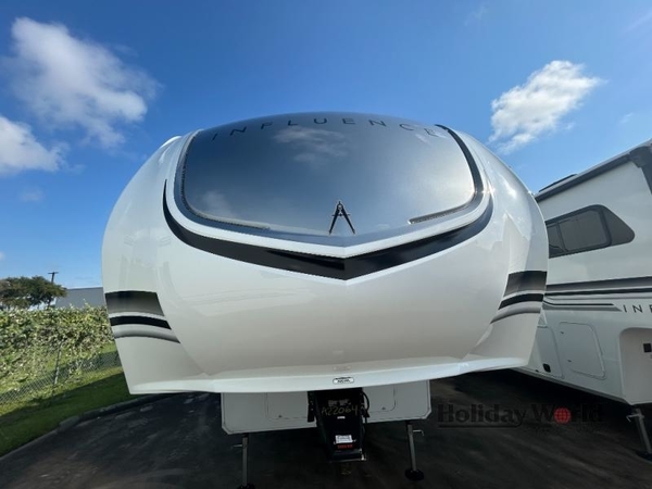 Any Grand Design Influence fifth wheel features five-sided aluminum cage construction with a walk-on roof and a fully enclosed underbelly with heated tanks and storage for all weather camping. For peace of mind, the MORryde CRE3000 Suspension system will provide safe and smooth towing, and the 101" widebody construction offers all the room you need and that is before multiple slides are fully engaged. You will appreciate the Keyed-Alike locks, slam-latch baggage doors with magnetic door catches, exterior security light, and SolidStep entry steps. On the inside, Congoleum flooring, premium roller shades for privacy, a hallway handrail for safety, and nightstands with USB ports to keep all of your electronics fully charged. You will also love the On Demand tankless water heater when showering, plus the added heat and ambiance from an electric fireplace, and so much more!