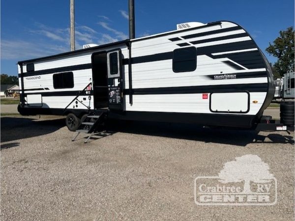 With any Transcend travel trailer by Grand Design, you will enjoy upscale appointments and convenient amenities to make each camping experience one to remember! The Quad Seal technology, residential insulated walls, plus heated and enclosed underbelly with suspended tanks make these units solid and durable. There is a black automotive glass door outside, along with a Safe-T-Rail assist on the main entry door, backup camera prep, and a universal docking station. JBL interior and exterior speakers plus a JBL head unit will let you listen to your favorite tunes as you visit under the power awning with LED strip lights. Inside, you'll enjoy multiple outlets to keep your gadgets charged, thermoformed and seamless countertops, and a 6' 6" interior height so you won't feel closed in. The Solar Prep Package will allow you to enjoy off-grid capabilities with a 200W solar panel, which is wired for up to 600W, a 30 AMP Bluetooth solar controller, a 2000W inverter prep, and more!