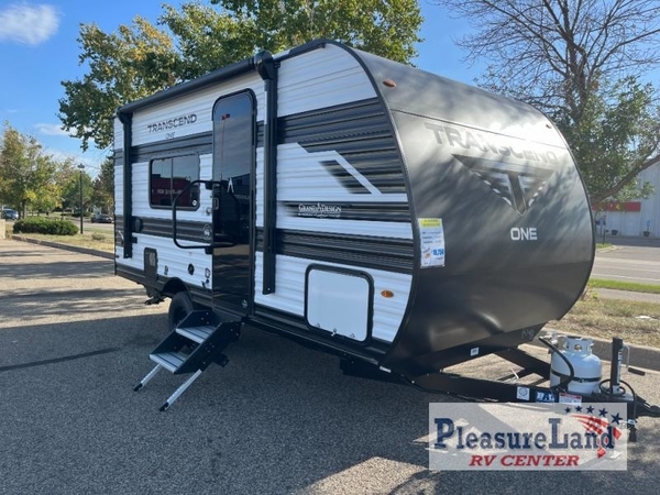 With any Transcend One travel trailer by Grand Design, you will enjoy lightweight towing thanks to their single-axle. There are many interior comforts to make camping easier than ever, such as recessed lighting, residential countertops, and a 6' 6" interior height. Each model is constructed with a heated and enclosed underbelly with suspended tanks, a moisture barrier floor enclosure, and Thermofoil over the roof and front cap for added protection. And a JBL sound system will let you listen to tunes as you visit under the power awning with a Fusion light!