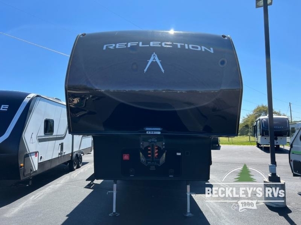 With any Reflection 150 Series fifth wheel by Grand Design, there is more available payload capacity and a broader range of half-ton trucks capable of towing this fifth wheel, and no slider hitch is needed thanks to the 90-degree turning radius which makes them short bed friendly and easier to tow. The mandatory Ultimate Power package provides a "One-Touch" automatic leveling system and a detachable power cord with LED light for easy setup, plus motion sensor pass-through lighting and entry lighting, and the Tire Linc TPMS will help you stay safe on the road. The interior offers residential luxury from the cabinetry and premium Congoleum flooring, to the booth dinette and residential-style window treatment. Make your refined decision today!