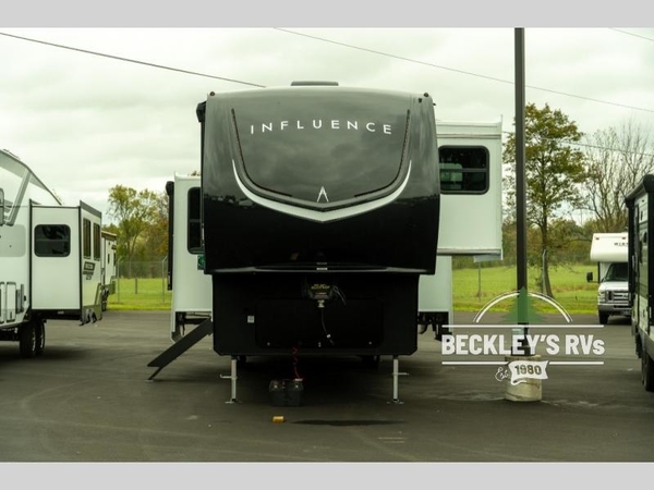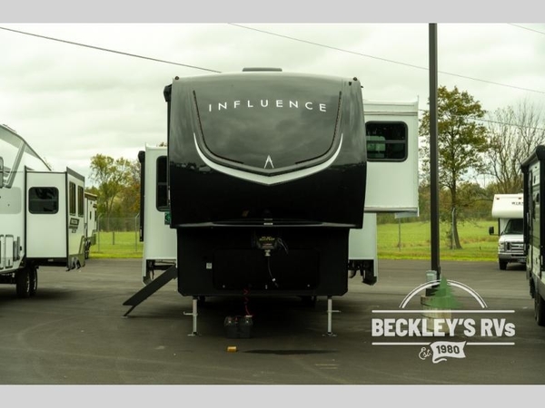 Any Grand Design Influence fifth wheel features five-sided aluminum cage construction with a walk-on roof and a fully enclosed underbelly with heated tanks and storage for all weather camping. For peace of mind, the MORryde CRE3000 Suspension system will provide safe and smooth towing, and the 101" widebody construction offers all the room you need and that is before multiple slides are fully engaged. You will appreciate the Keyed-Alike locks, slam-latch baggage doors with magnetic door catches, exterior security light, and SolidStep entry steps. On the inside, Congoleum flooring, premium roller shades for privacy, a hallway handrail for safety, and nightstands with USB ports to keep all of your electronics fully charged. You will also love the On Demand tankless water heater when showering, plus the added heat and ambiance from an electric fireplace, and so much more!