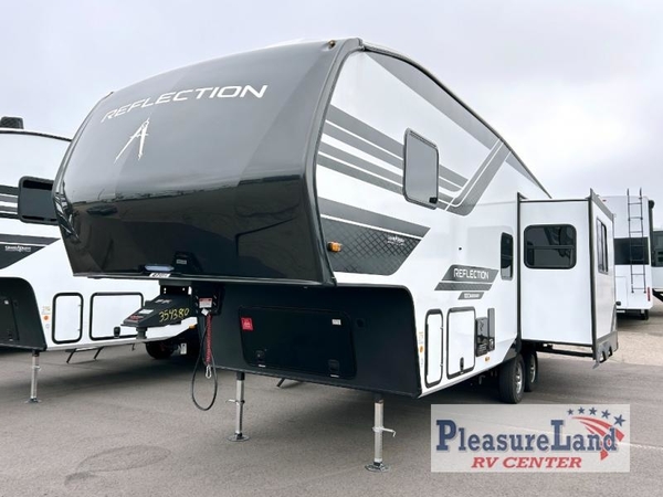Each Reflection 100 Series fifth wheel by Grand Design is affordable and packed with luxury for unforgettable camping memories! The MorRyde CRE3000 suspension system and Goodyear Endurance tires will provide smooth towing from home to campground. And the solar package with a 180W solar panel, 60 Amp charge controller and 12V refrigerator will allow you to camp for longer periods of time and in more locations! A heated and enclosed underbelly with circulating heat is included in the Arctic 4-Seasons Protection Package, along with a double insulated roof and front cap, and thermofoil insulation under the holding tanks so you can camp all year long if you choose. You will appreciate having an on-demand water heater for hot showers after exploring, and the universal all-in-one docking station will let you monitor your RVs tanks levels and functions with ease. These models also include many luxurious interior features, such as premium Congoleum flooring, pleated shades, residential cabinetry, and matte black fixtures and hardware. Don't let the Reflection 100 Series fifth wheels pass you by!