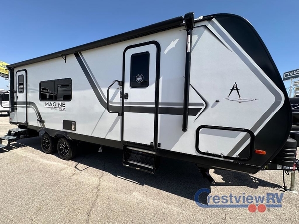 Treat yourself to a weekend of fun in this Imagine XLS travel trailer! Whether it's just you and your spouse, or you've chosen to bring along a group of friends, this trailer will meet the need. The front bedroom can sleep two people on the walk-around queen-size bed. The bedroom is quite functional because it not only contains the second exterior entry door, but it also has a private entrance into the walk-through bathroom since it is located on the other side of the bathroom. The booth dinette is functional too because it can transform from a dining location into a sleeping location, and the theater seating is directly across from the LED TV for easy viewing.