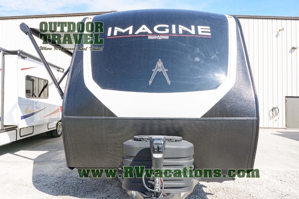 Just imagine leaving the world behind and secluding yourself away with your favorite people in your Grand Design Imagine travel trailer! The Imagine has been designed to enjoy extended season camping and includes a high-capacity furnace, a heated and enclosed underbelly with suspended tanks, a designated heat duct to the subfloor, and a high-density roof insulation with attic vent. You'll have maximum head room on the interior with 81" radius ceilings, and large panoramic windows to let in natural lighting. The exclusive drop-frame pass-through storage compartment is going to allow you to bring along lots of equipment, and the universal docking station is an all-in-one location for utilities and hook-ups. You'll also have oversized tank capacities so that you can fill and empty your tanks less often.