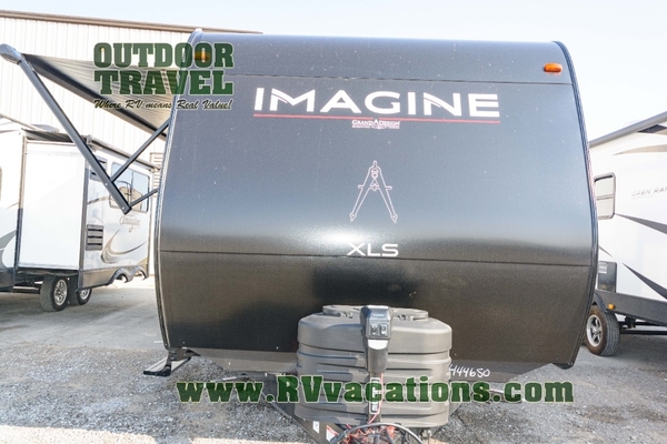 Let your imagination run wild with the possibilities that the Grand Design Imagine XLS travel trailer can provide! The Imagine XLS has been built with oversized tank capacities, an extra-large 2" fresh water drain valve, a ducted A/C system, a power tongue jack, and a heated and enclosed underbelly with suspended tanks. There is a designated heat duct to the subfloor and a residential ductless heating system throughout. For outdoor adventures, the electric awning with LED lights will enable you to stay protected, and the Tuff-Ply pass-thru flooring will withstand your many adventures. You will also love the XLS Solar Package that comes with a 200W roof mounted solar panel, a 40 Amp charge controller, a 12V 10 cu. ft. refrigerator, and roof mounted quick connect plugs!