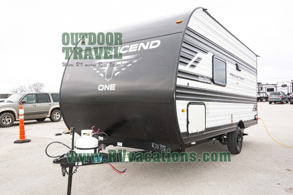 With any Transcend One travel trailer by Grand Design, you will enjoy lightweight towing thanks to their single-axle. There are many interior comforts to make camping easier than ever, such as recessed lighting, residential countertops, and a 6' 6" interior height. Each model is constructed with a heated and enclosed underbelly with suspended tanks, a moisture barrier floor enclosure, and Thermofoil over the roof and front cap for added protection. And a JBL sound system will let you listen to tunes as you visit under the power awning with a Fusion light!