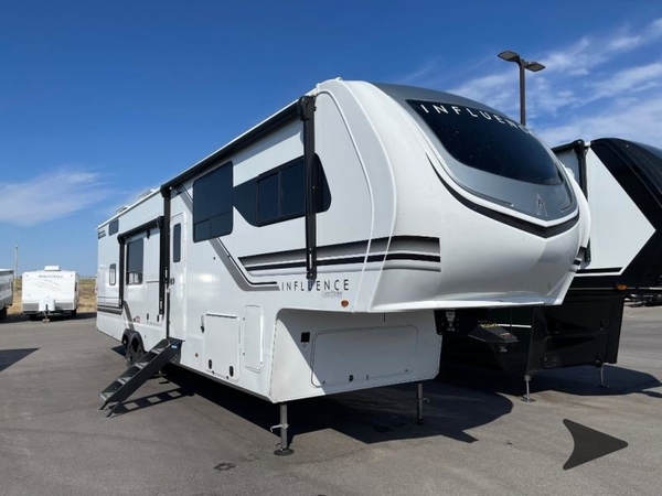 Any Grand Design Influence fifth wheel features five-sided aluminum cage construction with a walk-on roof and a fully enclosed underbelly with heated tanks and storage for all weather camping. For peace of mind, the MORryde CRE3000 Suspension system will provide safe and smooth towing, and the 101" widebody construction offers all the room you need and that is before multiple slides are fully engaged. You will appreciate the Keyed-Alike locks, slam-latch baggage doors with magnetic door catches, exterior security light, and SolidStep entry steps. On the inside, Congoleum flooring, premium roller shades for privacy, a hallway handrail for safety, and nightstands with USB ports to keep all of your electronics fully charged. You will also love the On Demand tankless water heater when showering, plus the added heat and ambiance from an electric fireplace, and so much more!