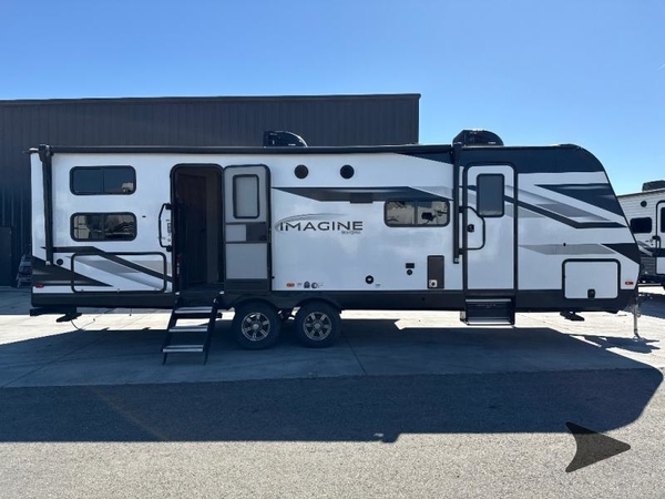 Where will you go with this Imagine travel trailer? The possibilities are endless! You can take your family on an exciting excursion because this trailer has enough sleeping space for everyone with a 60" x 80" queen bed in the private bedroom, a U-shaped dinette and tri-fold sofa in the main living area, and there is a set of 47" x 76" bunk beds with privacy curtains in the rear corner. You can come and go as you please with two entry doors, and the outdoor griddle and refrigerator will be fun to use when the weather is nice. Your family's pet can eat out of the pet dish below the refrigerator, and the large slide will keep this trailer feeling spacious.
