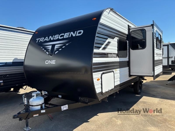 With any Transcend One travel trailer by Grand Design, you will enjoy lightweight towing thanks to their single-axle. There are many interior comforts to make camping easier than ever, such as recessed lighting, residential countertops, and a 6' 6" interior height. Each model is constructed with a heated and enclosed underbelly with suspended tanks, a moisture barrier floor enclosure, and Thermofoil over the roof and front cap for added protection. And a JBL sound system will let you listen to tunes as you visit under the power awning with a Fusion light!