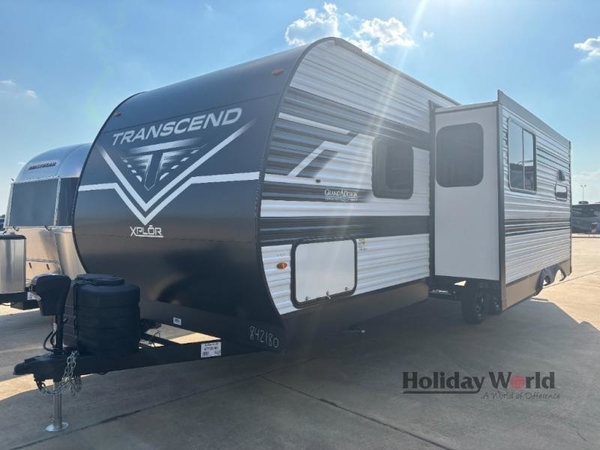 The customer-focused, quality-built Transcend Xplor travel trailers by Grand Design are your ticket to fun and adventure. You will appreciate the power tongue jack when it comes time to set up, as well as the all-in-one utility center and the detachable power cord with an LED light. These models include many outlets throughout, USB ports to charge your gadgets, and a JBL exterior speaker to listen to your favorite tunes. The interior of the Transcend Xplor will have you feeling right at home with upgraded residential furniture, residential countertops, residential cabinet doors, and the list goes on!