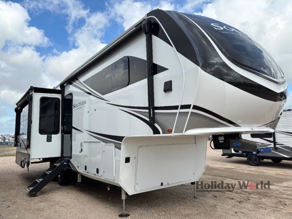 Each Solitude fifth wheel by Grand Design features a 101" wide-body construction, heavy duty 8,000 lb. axles, frameless tinted windows, and high-gloss gel coat sidewalls. You can camp year around thanks to the Weather-Tek Package that includes a 35K BTU high-capacity furnace, an all-in-one enclosed and heated utility center, and a fully enclosed underbelly with heated tanks and storage. Inside, you'll love the premium roller shades, hardwood cabinet doors, solid surface countertops, plus residential finishes throughout to make you truly feel at home. Each model also includes a MORryde CRE3000 suspension system, self adjusting brakes, and a MORryde pin box that will provide smooth towing from home to campground. Affordable luxury is possible with the Solitude fifth wheels; choose yours today!