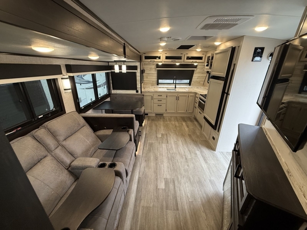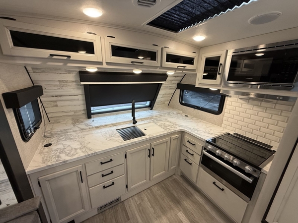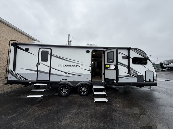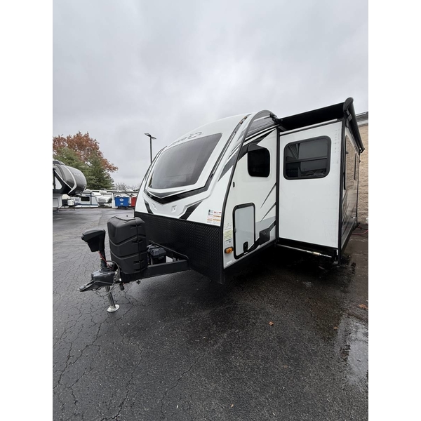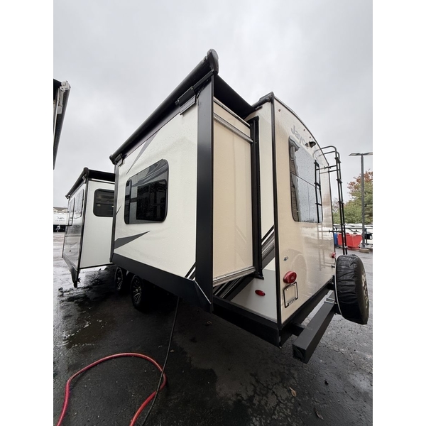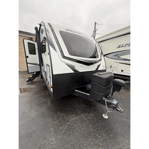 The 2023 Jayco White Hawk 26FK is a front-kitchen travel trailer that offers both style and functionality for your next adventure. This unit comes fully equipped with slide toppers, dual A/C units, and 50-amp service to keep you cool and comfortable wherever you camp. You'll love the abundance of natural lighting and generous countertop spaceperfect for meal prep or entertaining. Plus, you can camp with confidence thanks to the included 1-year Apache Village warranty. Dont miss out on this well-equipped and beautifully designed trailer!
