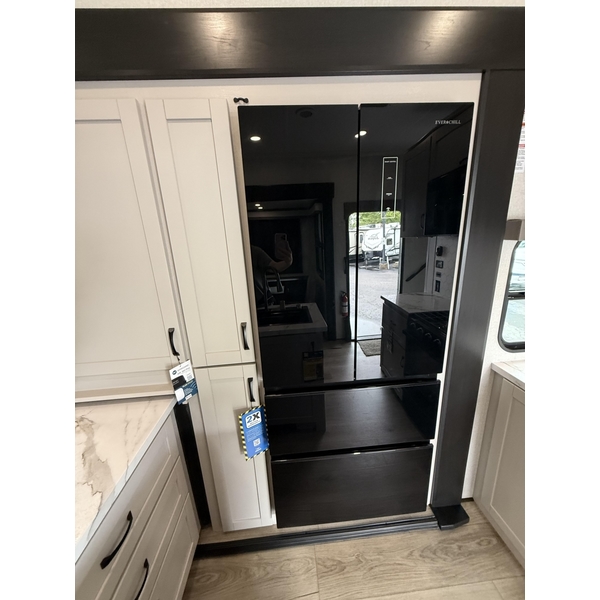 Power is never an issue with the NPS-powered Yamaha 6,000W generator and the Overlander II Solar Package featuring two roof-mounted 200W solar panels, 30AMP Digital PWM Solar Controller, and an 1800W inverter. Inside, residential-style luxury awaits with an Olympic 66 x 80 bed, handcrafted hardwood cabinetry, and a SuperSofa or theater seats with heat, massage, and LED lighting (select models). The kitchen boasts a residential refrigerator, 30-inch space-saver microwave, and a residential 21-inch oven.