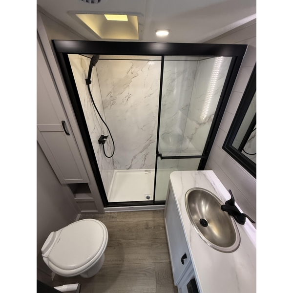Built on a 102 in. wide structural steel I-beam frame, the Seismic features Stronghold VBL aluminum-framed walls, a Magnum Truss Roof System, and an Alpha roof membrane with a limited lifetime warranty. Reaching your destination is effortless with the 5-Star Handling Package, which includes Dexter® Axles with ABS and Tow Assist, 17.5 in., 16-ply "H" rated Cooper tires, and the MorRyde CRE 3000 Suspension System for a smooth, controlled ride.