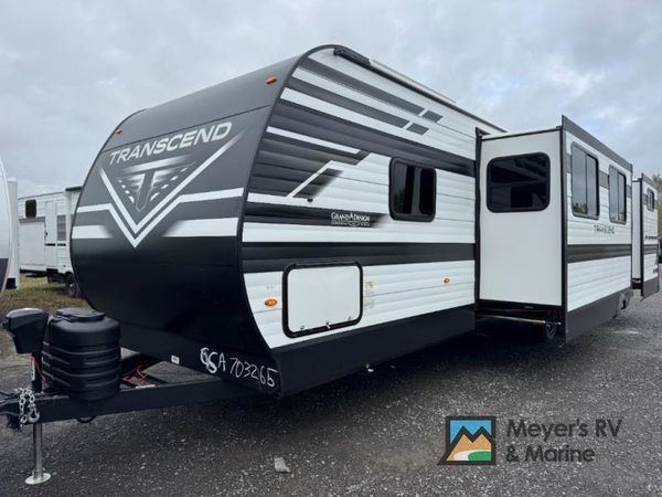 With any Transcend travel trailer by Grand Design, you will enjoy upscale appointments and convenient amenities to make each camping experience one to remember! The Quad Seal technology, residential insulated walls, plus heated and enclosed underbelly with suspended tanks make these units solid and durable. There is a black automotive glass door outside, along with a Safe-T-Rail assist on the main entry door, backup camera prep, and a universal docking station. JBL interior and exterior speakers plus a JBL head unit will let you listen to your favorite tunes as you visit under the power awning with LED strip lights. Inside, you'll enjoy multiple outlets to keep your gadgets charged, thermoformed and seamless countertops, and a 6' 6" interior height so you won't feel closed in. The Solar Prep Package will allow you to enjoy off-grid capabilities with a 200W solar panel, which is wired for up to 600W, a 30 AMP Bluetooth solar controller, a 2000W inverter prep, and more!