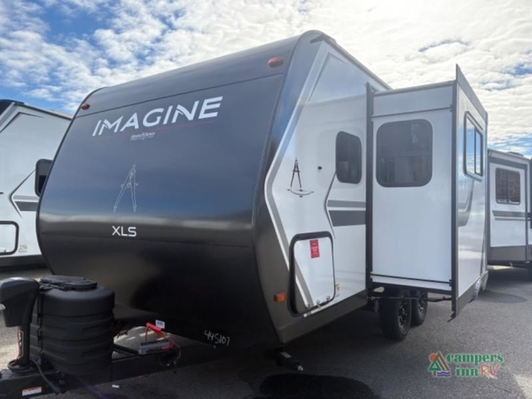 Let your imagination run wild with the possibilities that the Grand Design Imagine XLS travel trailer can provide! The Imagine XLS has been built with oversized tank capacities, an extra-large 2" fresh water drain valve, a ducted A/C system, a power tongue jack, and a heated and enclosed underbelly with suspended tanks. There is a designated heat duct to the subfloor and a residential ductless heating system throughout. For outdoor adventures, the electric awning with LED lights will enable you to stay protected, and the Tuff-Ply pass-thru flooring will withstand your many adventures. You will also love the XLS Solar Package that comes with a 200W roof mounted solar panel, a 30 Amp charge controller, a 12V 10 cu. ft. refrigerator, and roof mounted quick connect plugs!