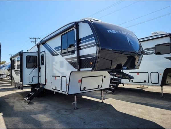 With any Reflection 150 Series fifth wheel by Grand Design, there is more available payload capacity and a broader range of half-ton trucks capable of towing this fifth wheel, and no slider hitch is needed thanks to the 90-degree turning radius which makes them short bed friendly and easier to tow. The mandatory Ultimate Power package provides a "One-Touch" automatic leveling system and a detachable power cord with LED light for easy setup, plus motion sensor pass-through lighting and entry lighting, and the Tire Linc TPMS will help you stay safe on the road. The interior offers residential luxury from the cabinetry and premium Congoleum flooring, to the booth dinette and residential-style window treatment. Make your refined decision today!