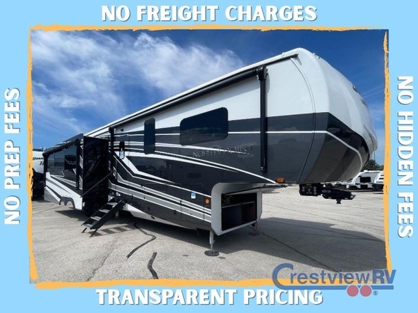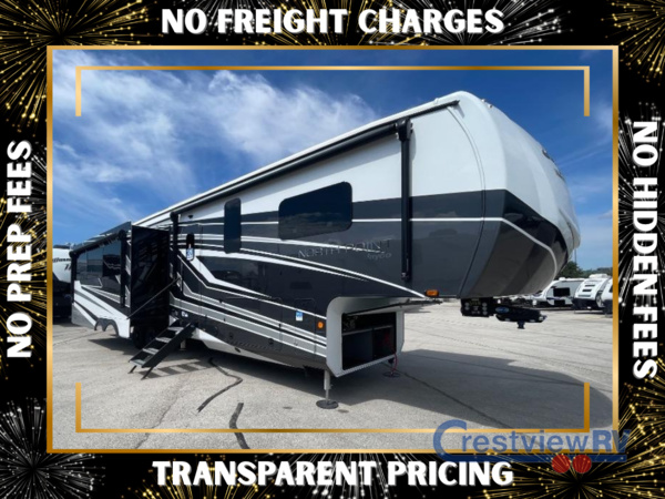With any North Point fifth wheel by Jayco you begin with a strong foundation with a custom frame, designed and sized specifically to best support each unit. Constructed with Stronghold VBL aluminum framed, vacuum bond laminated walls and the Magnum Truss XL6 roof system with an Alpha roof membrane system, which is the strongest tested roof in the industry. The 5-Star Handling package is included with H-rated tires with TPMS, a MORryde rubber pin box, Dexter axles with Nev-R-Adjust brakes, MORryde CRE-3000 rubberized suspension and wet bolt fasteners and bronze bushings. The interior has handcrafted hardwood glazed doors and drawers, vinyl flooring throughout, an integrated under-mount sink in the main bathroom, plus so much more you just have to see one to believe it all!