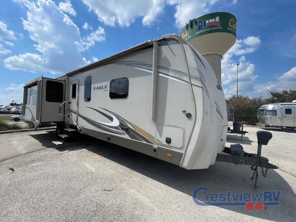 With modern styling and innovative design, the Jayco Eagle boasts an upgraded travel experience for everyone! Each Eagle offers StrongholdVBL exterior walls, a Magnum Truss roof system which is the strongest roof in the industry, and Climate Shield zero-degree-tested weather protection so that you can consistently enjoy four seasons of traveling. The industry-exclusive HELIX cooling system provides you with a "Whisper Quiet" 15,000 BTU A/C unit, as well as a Jayco-exclusive insulated duct design. As an industry first, Jayco is proud to include preparations for rooftop and ground solar panels by Go Power® in every Eagle, and the Keyed Alike lock system will ensure that you are in complete control of everything you have stored in the enormous pass-through storage compartment.