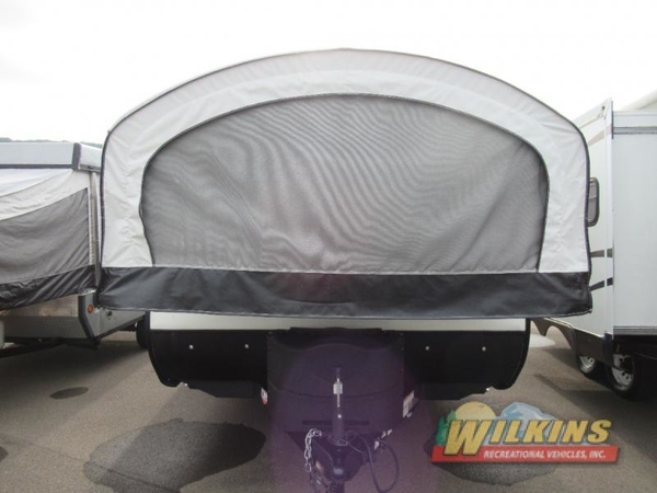 Looking to camp with your family at a state park or a far-away camping destination? This easy to tow hybrid expandable offers a place to relax, dine and sleep inside at the sofa, the dinette and/or the front and rear tent end beds with Stronghold vacuum-bonded bed platforms with 1,050 lb. weight rating. Outside you can relax under the 13' power awning with LED lights either during the day or night just grab your camp chairs. The rear corner bathroom is steps away from the entry allowing you to quickly get back outside to the fun. And the wardrobe/TV cabinet offers you additional storage if the overhead shelves and cabinets are full. The cook will enjoy having a three-burner recessed cooktop and microwave to make warm meals for everyone and a 6 cu. ft. refrigerator to store the cold items.