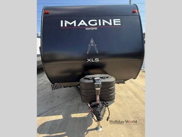 Let your imagination run wild with the possibilities that the Grand Design Imagine XLS travel trailer can provide! The Imagine XLS has been built with oversized tank capacities, an extra-large 2" fresh water drain valve, a ducted A/C system, a power tongue jack, and a heated and enclosed underbelly with suspended tanks. There is a designated heat duct to the subfloor and a residential ductless heating system throughout. For outdoor adventures, the electric awning with LED lights will enable you to stay protected, and the Tuff-Ply pass-thru flooring will withstand your adventures. You will also love the XLS Solar Package that comes with a 200W roof mounted solar panel, a 30 Amp charge controller, a 12V 10 cu. ft. refrigerator, and roof mounted quick connect plugs!