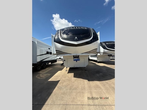Each Solitude fifth wheel by Grand Design features a 101" wide-body construction, heavy duty 8,000 lb. axles, frameless tinted windows, and high-gloss gel coat sidewalls. You can camp year around thanks to the Weather-Tek Package that includes a 35K BTU high-capacity furnace, an all-in-one enclosed and heated utility center, and a fully enclosed underbelly with heated tanks and storage. Inside, you'll love the premium roller shades, hardwood cabinet doors, solid surface countertops, plus residential finishes throughout to make you truly feel at home. Each model also includes a MORryde CRE3000 suspension system, self adjusting brakes, and a MORryde pin box that will provide smooth towing from home to campground. Affordable luxury is possible with the Solitude fifth wheels; choose yours today!
