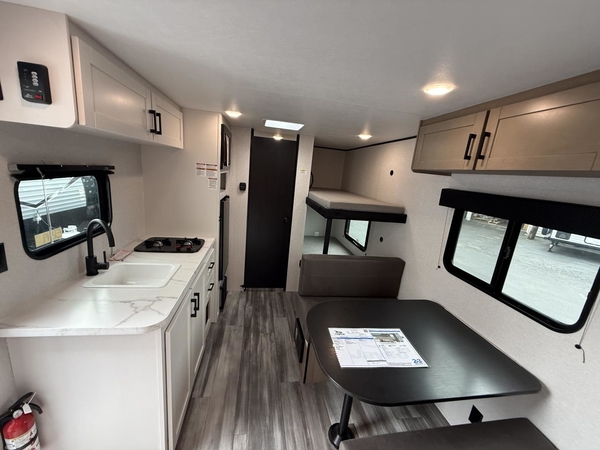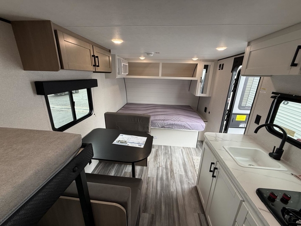 After a long day of exploring, step inside to enjoy instant hot water from the on-demand tankless water heaterup to 60,000 BTU in standard models and 42,000 BTU in the Sport Editionso you can clean up comfortably, just like at home. Oversized G20 dark-tinted windows flood the space with natural light while blocking heat and UV rays, giving you both stunning views and added privacy.