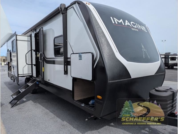 With this Imagine travel trailer, you can work while you're on the road because it offers you a desk in the main living area. You won't have to miss out on the action since you'll be right next to the booth dinette and tri-fold sofa, and there is even a pantry directly to the left of the desk for you to grab a quick snack while you're working. Once you're done with work, you can relax on the tri-fold sofa while you watch the telescoping LED HDTV, and the private bedroom offers you a 60" x 80" queen bed to rest on when you're ready to call it a night.