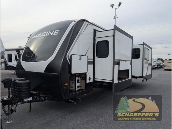 Just imagine leaving the world behind and secluding yourself away with your favorite people in your Grand Design Imagine travel trailer! The Imagine has been designed to enjoy camping and includes a high-capacity furnace, a heated and enclosed underbelly with suspended tanks, a designated heat duct to the subfloor, and a high-density roof insulation with attic vent. You'll have a large panoramic window to let natural lighting in and an adjustable Power Awning with LED Lights for those night gatherings. The exclusive drop-frame pass-through storage compartment is going to allow you to bring along lots of equipment, and the universal docking station is an all-in-one location for utilities and hook-ups. You'll also have oversized tank capacities so that you can fill and empty your tanks less often.