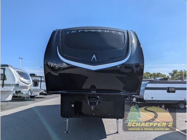 Any Grand Design Influence fifth wheel features five-sided aluminum cage construction with a walk-on roof and a fully enclosed underbelly with heated tanks and storage for all weather camping. For peace of mind, the MORryde CRE3000 Suspension system will provide safe and smooth towing, and the 101" widebody construction offers all the room you need and that is before multiple slides are fully engaged. You will appreciate the Keyed-Alike locks, slam-latch baggage doors with magnetic door catches, exterior security light, and SolidStep entry steps. On the inside, Congoleum flooring, premium roller shades for privacy, a hallway handrail for safety, and nightstands with USB ports to keep all of your electronics fully charged. You will also love the On Demand tankless water heater when showering, plus the added heat and ambiance from an electric fireplace, and so much more!