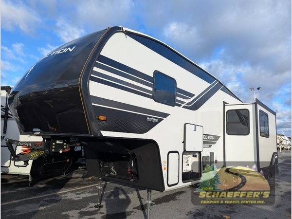 With any Reflection 150 Series fifth wheel by Grand Design, there is more available payload capacity and a broader range of half-ton trucks capable of towing this fifth wheel, and no slider hitch is needed thanks to the 90-degree turning radius which makes them short bed friendly and easier to tow. The mandatory Ultimate Power package provides a "One-Touch" automatic leveling system and a detachable power cord with LED light for easy setup, plus motion sensor pass-through lighting and entry lighting, and the Tire Linc TPMS will help you stay safe on the road. The interior offers residential cabinetry and premium Congoleum flooring, to the booth dinette and residential-style window treatment. Make your refined decision today!