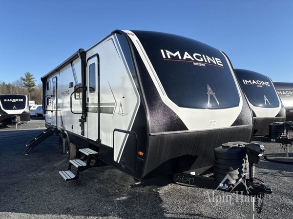 Built for extended-season camping, the Imagine 2800BH includes a high-capacity furnace, heated and enclosed underbelly with suspended tanks, designated heat duct to the subfloor, and high-density roof insulation with attic vent. The 81" radius ceilings enhance the open feel, while large panoramic windows bring in natural light. A drop-frame pass-through storage compartment offers generous room for gear, and the universal docking station centralizes hookups for added convenience. Oversized tank capacities help extend your stay between service stops, allowing you to focus on enjoying your time away.