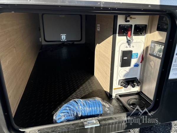 Dual entry doors allow for quick access, making it easy for everyone to go in and out. The kitchen is equipped with a flip-up countertop extension for added prep space, and thoughtful details like the shoe storage area help keep everything organized. Outside, the 19' power awning creates a shaded gathering area, while the outdoor kitchen with a griddle and refrigerator makes it simple to throw some burgers on at night!