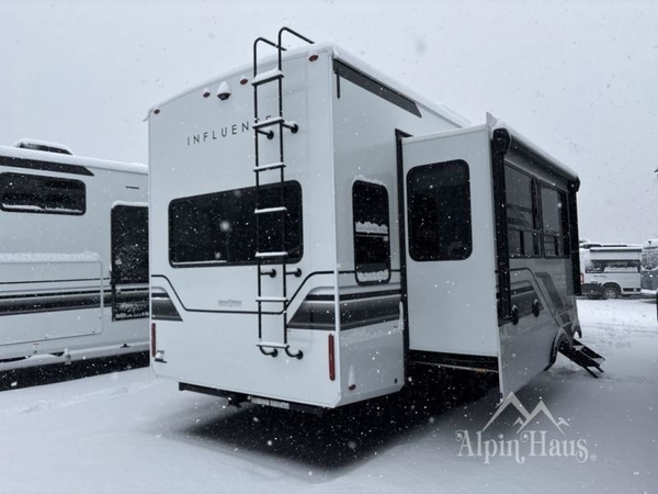 Any Grand Design Influence fifth wheel features five-sided aluminum cage construction with a walk-on roof and a fully enclosed underbelly with heated tanks and storage for all weather camping. For peace of mind, the MORryde CRE3000 Suspension system will provide safe and smooth towing, and the 101" widebody construction offers all the room you need and that is before multiple slides are fully engaged. You will appreciate the Keyed-Alike locks, slam-latch baggage doors with magnetic door catches, exterior security light, and SolidStep entry steps. On the inside, Congoleum flooring, premium roller shades for privacy, a hallway handrail for safety, and nightstands with USB ports to keep all of your electronics fully charged. You will also love the On Demand tankless water heater when showering, plus the added heat and ambiance from an electric fireplace, and so much more!