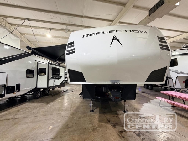 Each Reflection 100 Series fifth wheel by Grand Design is affordable and packed with luxury for unforgettable camping memories! The MorRyde CRE3000 suspension system and Goodyear Endurance tires will provide smooth towing from home to campground. And the solar package with a 180W solar panel, 60 Amp charge controller and 12V refrigerator will allow you to camp for longer periods of time and in more locations! A heated and enclosed underbelly with circulating heat is included in the Arctic 4-Seasons Protection Package, along with a double insulated roof and front cap, and thermofoil insulation under the holding tanks so you can camp all year long if you choose. You will appreciate having an on-demand water heater for hot showers after exploring, and the universal all-in-one docking station will let you monitor your RVs tanks levels and functions with ease. These models also include many luxurious interior features, such as premium Congoleum flooring, pleated shades, residential cabinetry, and matte black fixtures and hardware. Don't let the Reflection 100 Series fifth wheels pass you by!