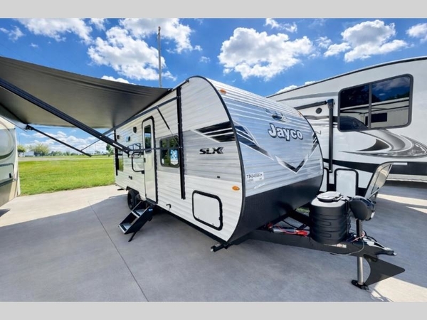 The Jayco Jay Flight SLX travel trailer is quite easy to own because it is lightweight for an easier towing experience. Built on a fully integrated A-frame with galvanized-steel, impact-resistant wheel wells, the Jay Flight SLX has quality at its very foundation. That quality continues on to the electric self-adjusting brakes, easy-lube hubs, Magnum Truss roof system, and LP quick connect. Some of what the mandatory Customer Value Package includes is backup camera prep, Keyed-Alike entry and baggage doors, and an on-demand tankless water heater.
