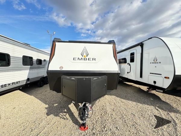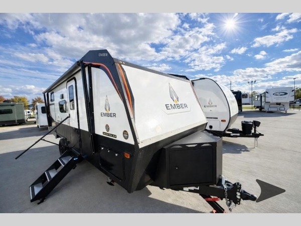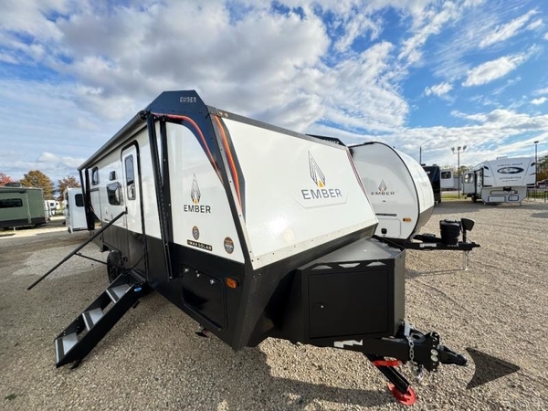 Each one of these Ember RV Overland Series travel trailers and toy hauler were built to meet the needs of today's most discerning RVers with layouts to fit couples and families! The CURT independent suspension comes with heavy-duty coil springs with dual shock absorbers on each wheel, and the 5-sided aluminum frame construction is sure to hold up through whatever adventure you throw its way. Laminated Azdel Onboard composite walls and rooftop prevent rotting or molding of the unit. Their chic interior design comes with structural composite flooring that is durable and easy to clean, dual pane caravan windows with integrated thermal shades/screens for added privacy, and an EmberLink smart RV control system to use at the touch of a finger. The Off-Grid Solar package lets you go further into the woods and the Safety First package helps you arrive safely to each destination.
