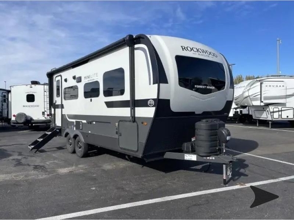 Each Rockwood Mini Lite travel trailer by Forest River is constructed with a fully laminated one-piece walkable roof, sleek frameless windows, and a six-sided full aluminum frame for strength and durability. The 12V thermostatically controlled heated tanks, plus radiant foil in the underbelly will allow you to camp well into the colder months, and the 200W roof solar panel will be perfect for a little off-gridding. Each model includes solid surface kitchen countertops, hidden hinge cabinet doors, roller shades, plus many more interior features. Having an AIR 360+ omnidirectional antenna with WiFi prep on board gives you the option to get some work done if it's needed, and the power tongue jack provides hassle-free set up, so you can enjoy more time relaxing!