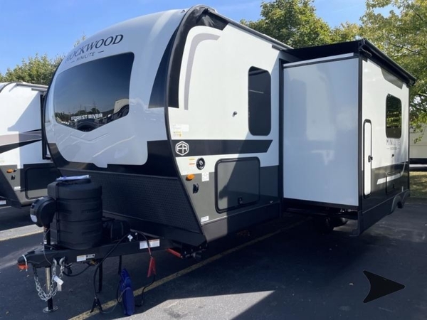 Each Rockwood Mini Lite travel trailer by Forest River is constructed with a fully laminated one-piece walkable roof, sleek frameless windows, and a six-sided full aluminum frame for strength and durability. The 12V thermostatically controlled heated tanks, plus radiant foil in the underbelly will allow you to camp well into the colder months, and the 200W roof solar panel will be perfect for a little off-gridding. Each model includes solid surface kitchen countertops, hidden hinge cabinet doors, roller shades, plus many more interior features. Having an AIR 360+ omnidirectional antenna with WiFi prep on board gives you the option to get some work done if it's needed, and the power tongue jack provides hassle-free set up, so you can enjoy more time relaxing!
