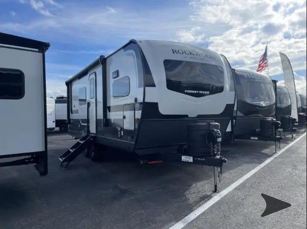 Each Rockwood Mini Lite travel trailer by Forest River is constructed with a fully laminated one-piece walkable roof, sleek frameless windows, and a six-sided full aluminum frame for strength and durability. The 12V thermostatically controlled heated tanks, plus radiant foil in the underbelly will allow you to camp well into the colder months, and the 200W roof solar panel will be perfect for a little off-gridding. Each model includes solid surface kitchen countertops, hidden hinge cabinet doors, roller shades, plus many more interior features. Having an AIR 360+ omnidirectional antenna with WiFi prep on board gives you the option to get some work done if it's needed, and the power tongue jack provides hassle-free set up, so you can enjoy more time relaxing!