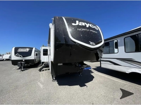 With any North Point fifth wheel by Jayco you begin with a strong foundation with a custom frame, designed and sized specifically to best support each unit. Constructed with Stronghold VBL aluminum framed, vacuum bond laminated walls and the Magnum Truss XL6 roof system with an Alpha roof membrane system, which is the strongest tested roof in the industry. The 5-Star Handling package is included with Uniroyal tires, a MORryde rubber pin box, Dexter axles with Nev-R-Adjust brakes, MORryde CRE-3000 rubberized suspension and wet bolt fasteners and bronze bushings. The interior has handcrafted hardwood glazed doors and drawers, vinyl flooring throughout, an integrated under-mount sink in the main bathroom, plus so much more you just have to see one to believe it all!