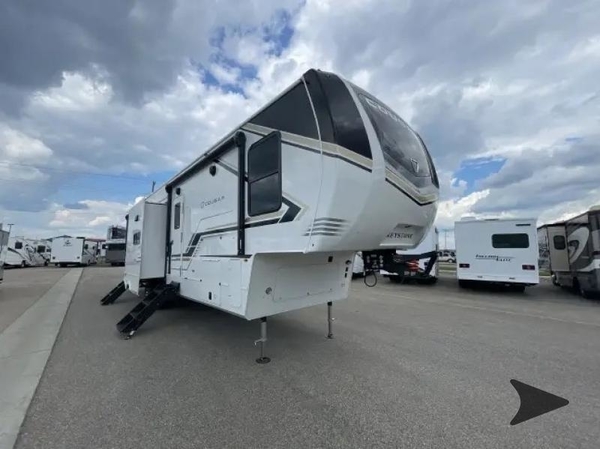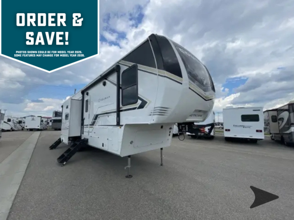 You'll want to pounce on this Cougar fifth wheel because of its amazing sleeping accommodations! Not only is there a master suite up front, but there is also a bedroom suite in the back. This rear suite has a 54" x 74" bed with a 54" x 74" loft bed above it. Plus, the second exterior entry door leads into the half bathroom, so you can exit the fifth wheel from this rear bedroom too. When you do exit, you'll be right next to the outdoor kitchen prep area with a mini refrigerator, and two 12' power awnings. A 68" tri-fold sleeper sofa and booth dinette adds more sleeping space, and it also gives you a comfortable place to watch the LED HDTV at night. A kitchen island will be helpful to use while you're cooking, and the 16 cu. ft. 12V refrigerator will hold perishables for the whole week!