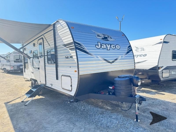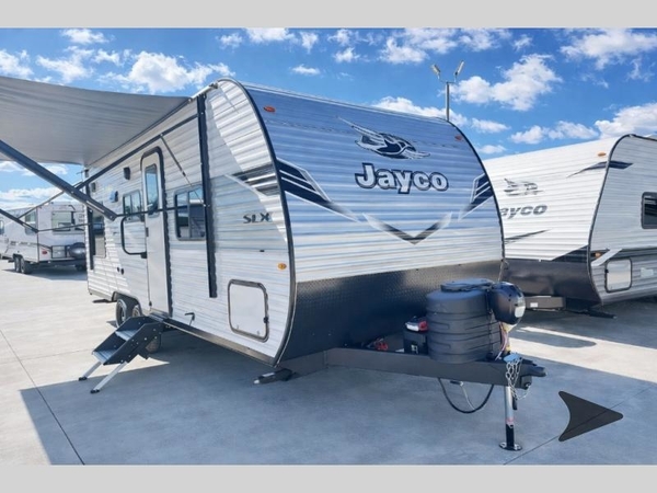 The Jayco Jay Flight SLX travel trailer is quite easy to own because it is lightweight for an easier towing experience. Built on a fully integrated A-frame with galvanized-steel, impact-resistant wheel wells, the Jay Flight SLX has quality at its very foundation. That quality continues on to the electric self-adjusting brakes, easy-lube hubs, Magnum Truss roof system, and LP quick connect. Some of what the mandatory Customer Value Package includes is backup camera prep, Keyed-Alike entry and baggage doors, marine grade exterior speakers, and an on-demand tankless water heater.