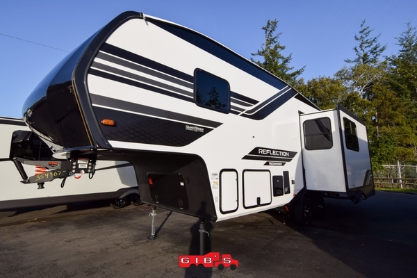 With any Reflection 150 Series fifth wheel by Grand Design, there is more available payload capacity and a broader range of half-ton trucks capable of towing this fifth wheel, and no slider hitch is needed thanks to the 90-degree turning radius which makes them short bed friendly and easier to tow. The mandatory Ultimate Power package provides a "One-Touch" automatic leveling system and a detachable power cord with LED light for easy setup, plus motion sensor pass-through lighting and entry lighting, and the Tire Linc TPMS will help you stay safe on the road. The interior offers residential cabinetry and premium Congoleum flooring, to the booth dinette and residential-style window treatment. Make your refined decision today!