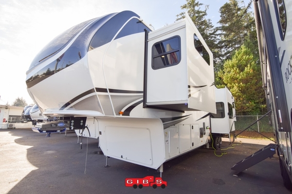 Each Solitude fifth wheel by Grand Design features a 101" wide-body construction, heavy duty 8,000 lb. axles, frameless tinted windows, and high-gloss gel coat sidewalls. You can camp year around thanks to the Weather-Tek Package that includes a 35K BTU high-capacity furnace, an all-in-one enclosed and heated utility center, and a fully enclosed underbelly with heated tanks and storage. Inside, you'll love the premium roller shades, hardwood cabinet doors, solid surface countertops, plus residential finishes throughout to make you truly feel at home. Each model also includes a MORryde CRE3000 suspension system, self adjusting brakes, and a MORryde pin box that will provide smooth towing from home to campground. Affordable luxury is possible with the Solitude fifth wheels; choose yours today!